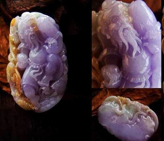 这是一种偏向蓝色的紫色,由于饱和度较大所以颜色从浅蓝紫到深蓝紫都可见。它是市场中、常见的紫色翡翠,有时在紫色翡翠中还会出现一些绿色,形成所谓的“春带彩”,这也是紫罗兰翡翠的标准色。