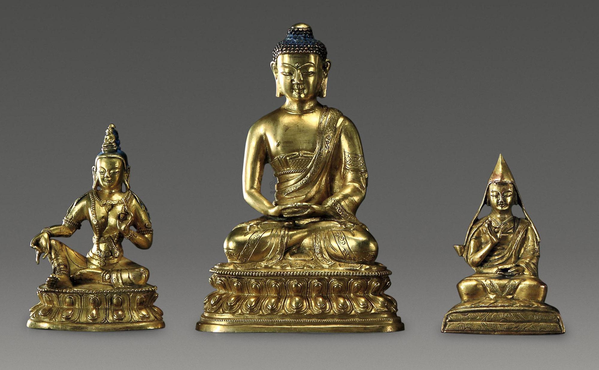 (3)按传统的技艺制造佛像,应好鉴别一些。这种作伪与上述作伪动机有区别,例如西藏佛像。尼泊尔、西藏地区制作佛像有着上千年的历史,他们是为了宗教的需要而制作佛像。制作者并不是有意模仿古佛像作伪以骗人,因为制作佛像、法器、绘制唐卡已经形成了一套标准化的格式,对佛像各部位的比例、衣饰、身相、持物等都有详细的规定,所以这些艺匠们制出的佛像,有的与明清时代的铜佛在外形上可说是几乎没有差别,需慎重购买。