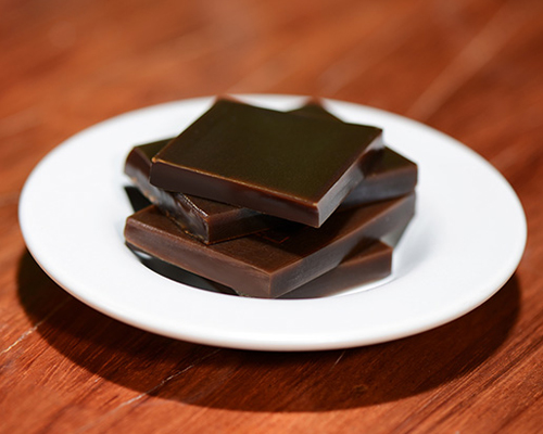 正宗阿胶具有黄透如琥珀色,或光黑如莹漆者为真,真者不作皮臭,夏日亦不湿软等特点,这些可以从胶块本身进行鉴别:
